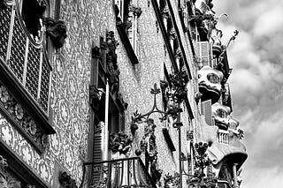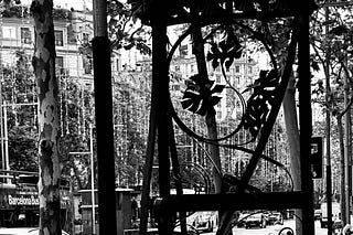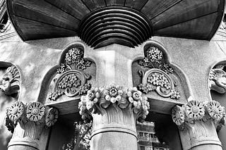 Gazing Up at the Grandeur: A Monochrome Moment in Modernist Barcelona