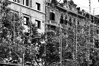 Monochrome Barcelona: Driving Down Passeig de Gràcia Under Seasonal Street Lights