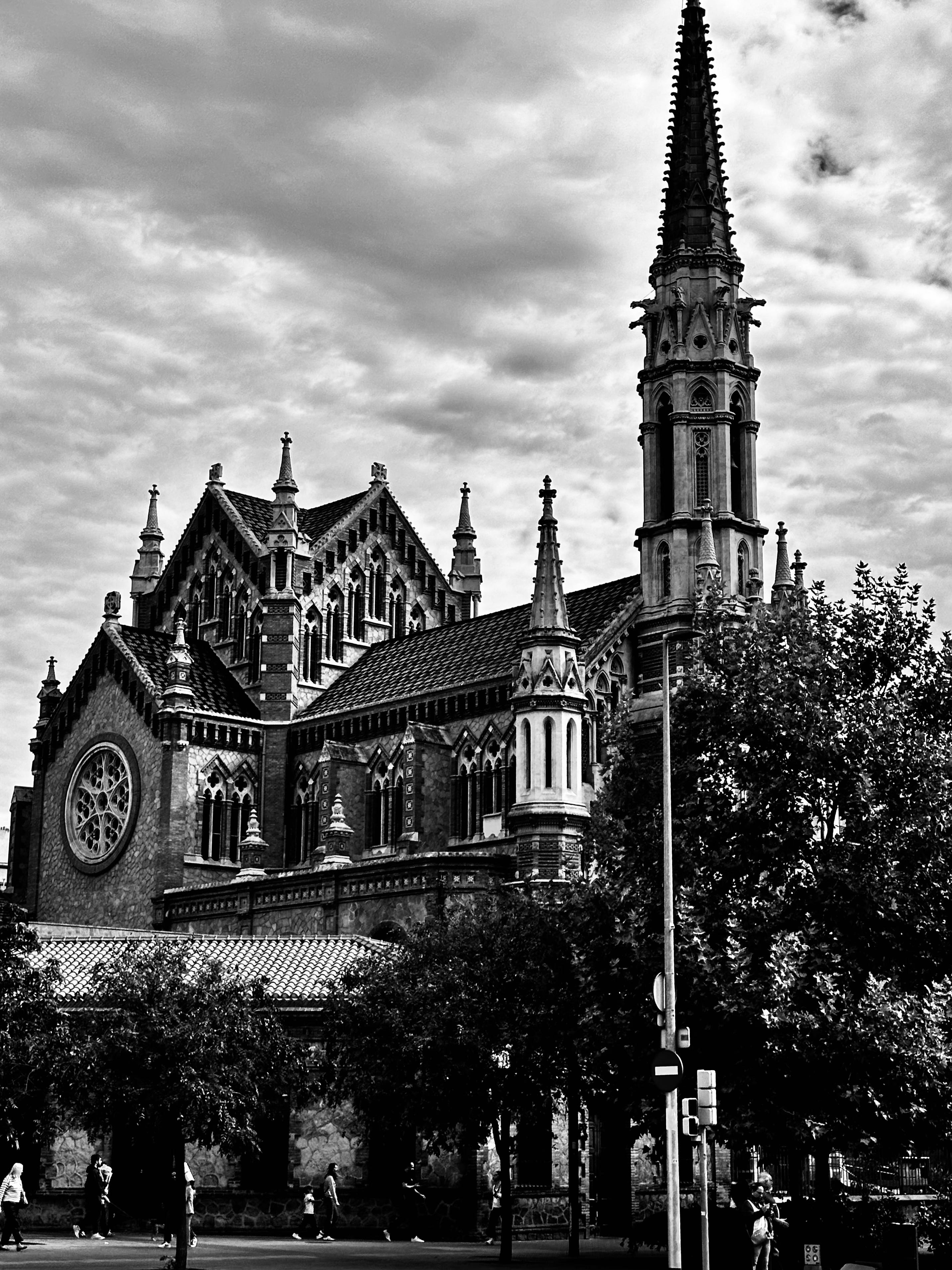 While Barcelona is world-famous for its Modernist wonders, the city’s commitment to other architectural styles, particularly the dramatic Neo-Gothic, is equally profound. This photograph captures the soaring, intricate exterior of a major church, likely the Església de les Saleses.