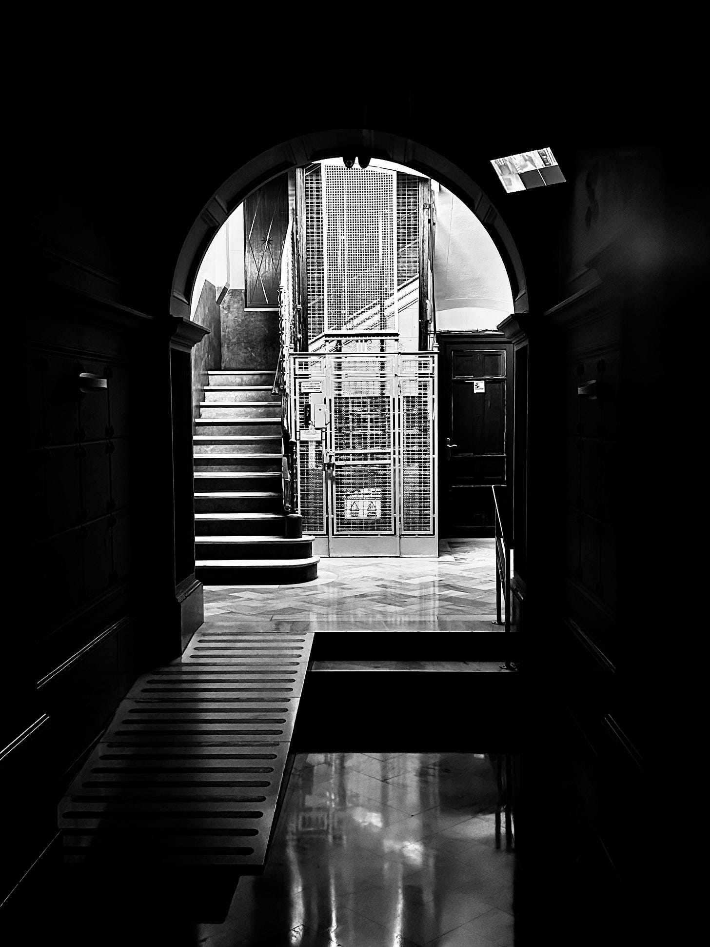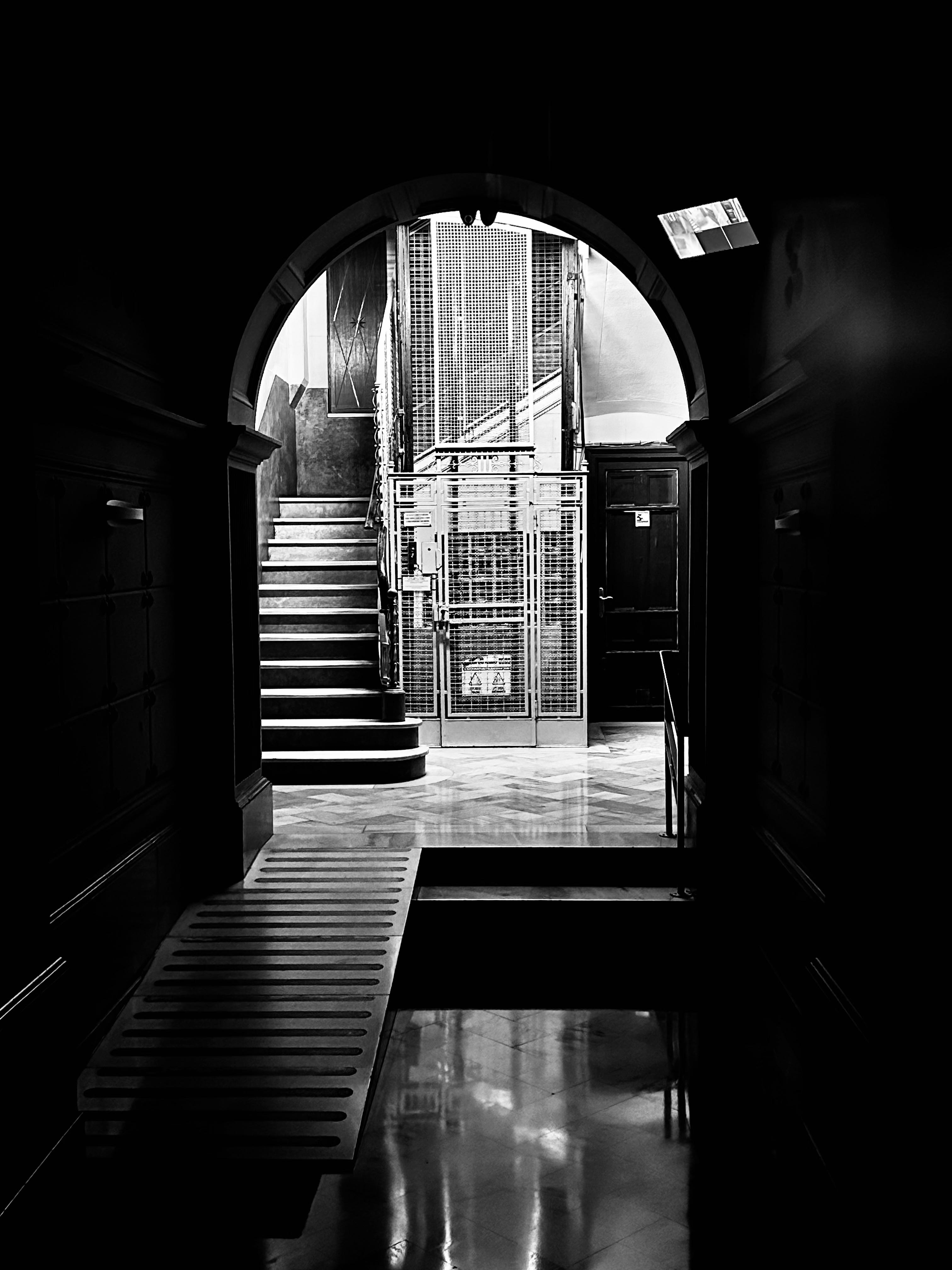 Behind the Arch: Light, Shadow, and the Elegance of the Cage Lift
