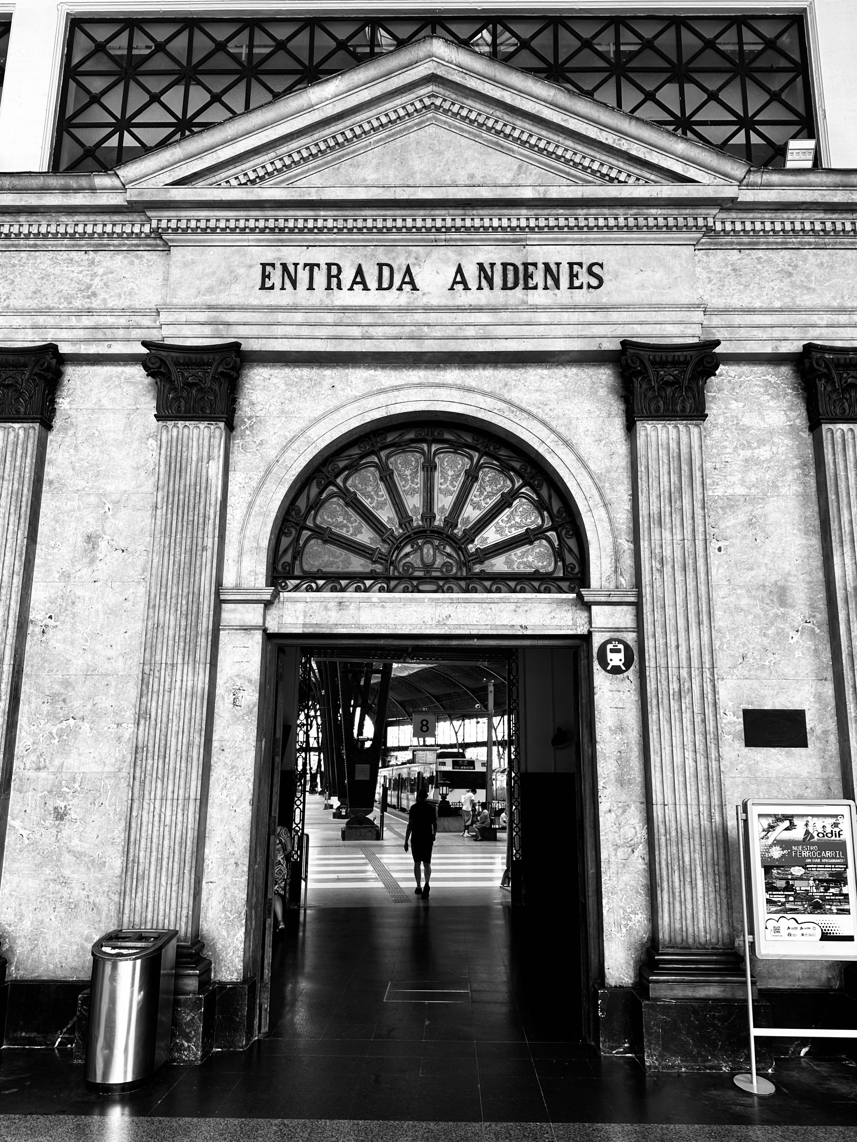 Barcelona, a city celebrated for its vibrant culture and artistic flair, often reveals its truest colours even in shades of grey. This commanding monochrome photograph captures the grand entrance to the train platforms of Estació de França, one of Barcelona's most historically significant and architecturally impressive train stations.