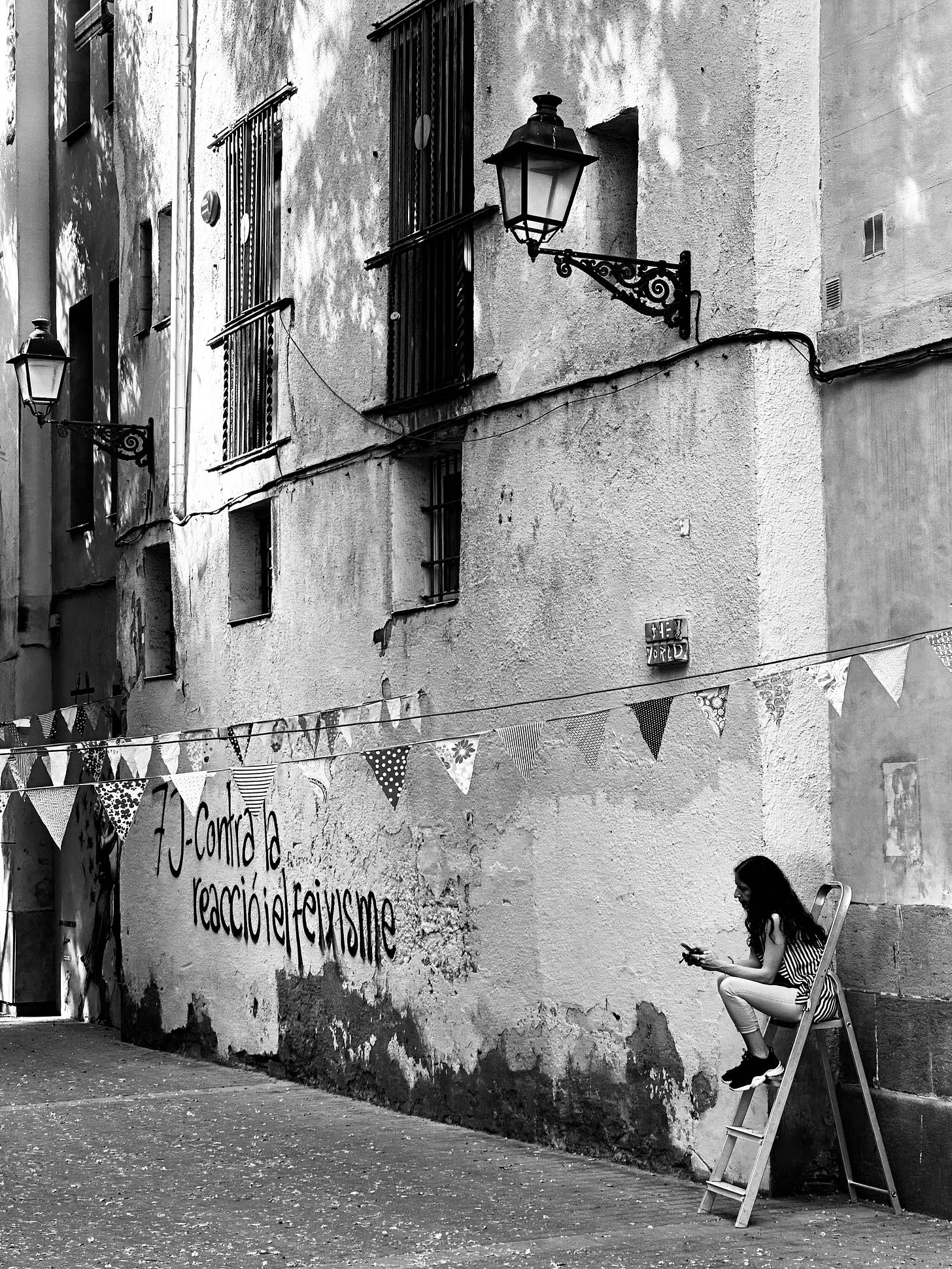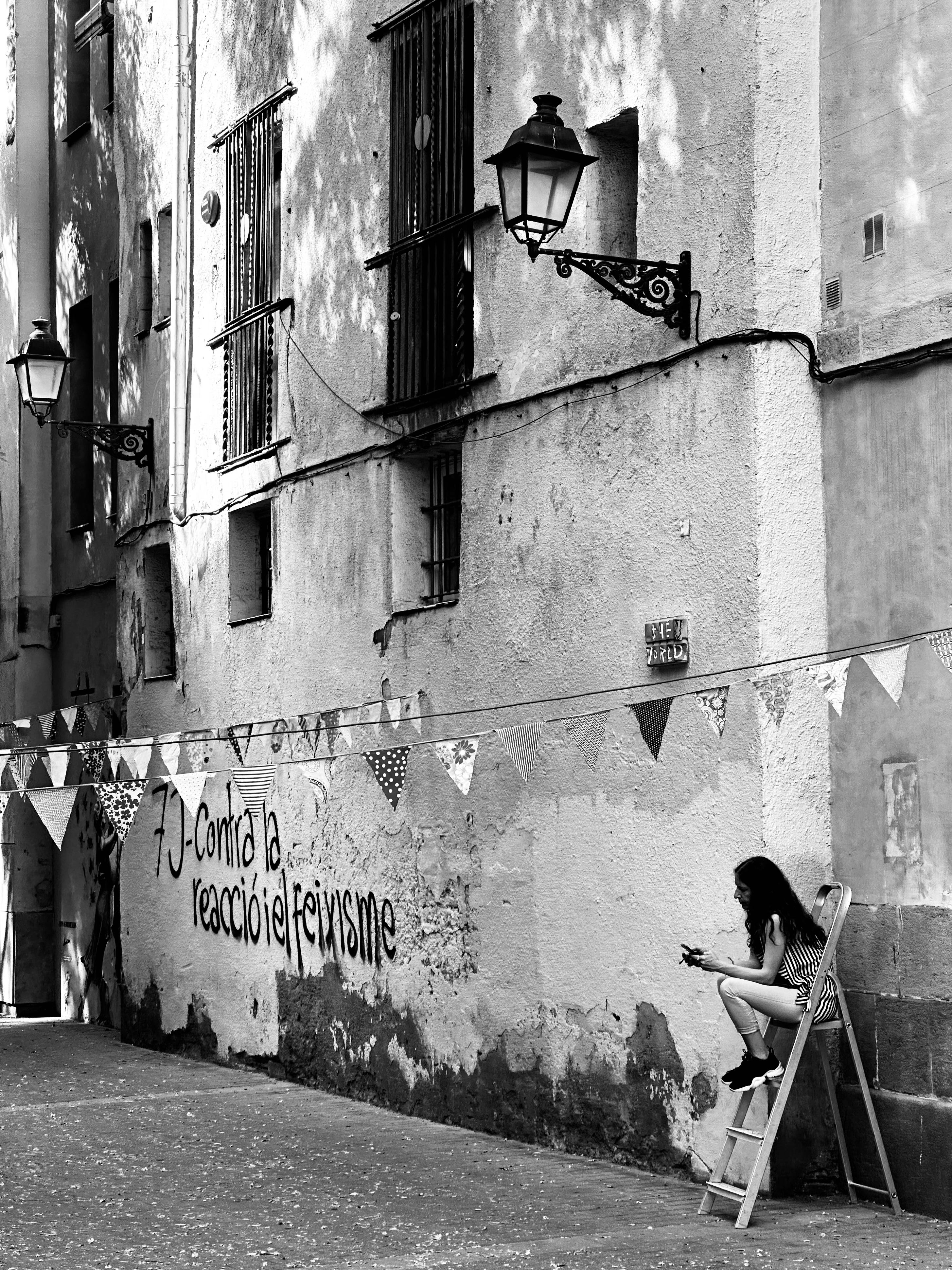 Barcelona, a city celebrated for its vibrant culture and artistic flair, often reveals its truest colours even in shades of grey. This striking monochrome photograph captures a unique street scene in a Barcelona alley, blending urban decay, protest art, and a moment of quiet contemplation.
