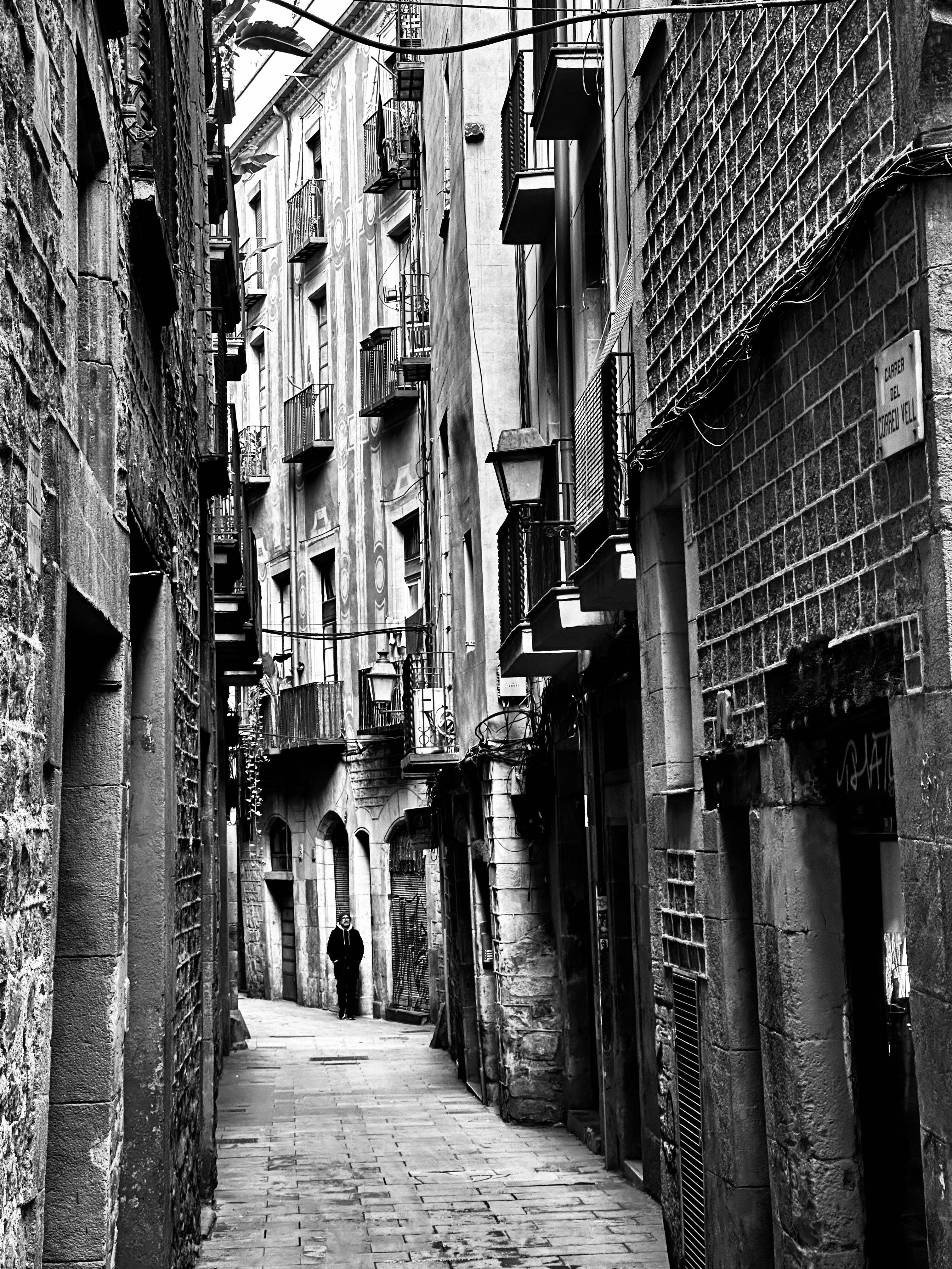 Shadowed Passages: A Lone Figure in the Ancient Alleys of Barcelona’s Gothic Quarter - Street Noir