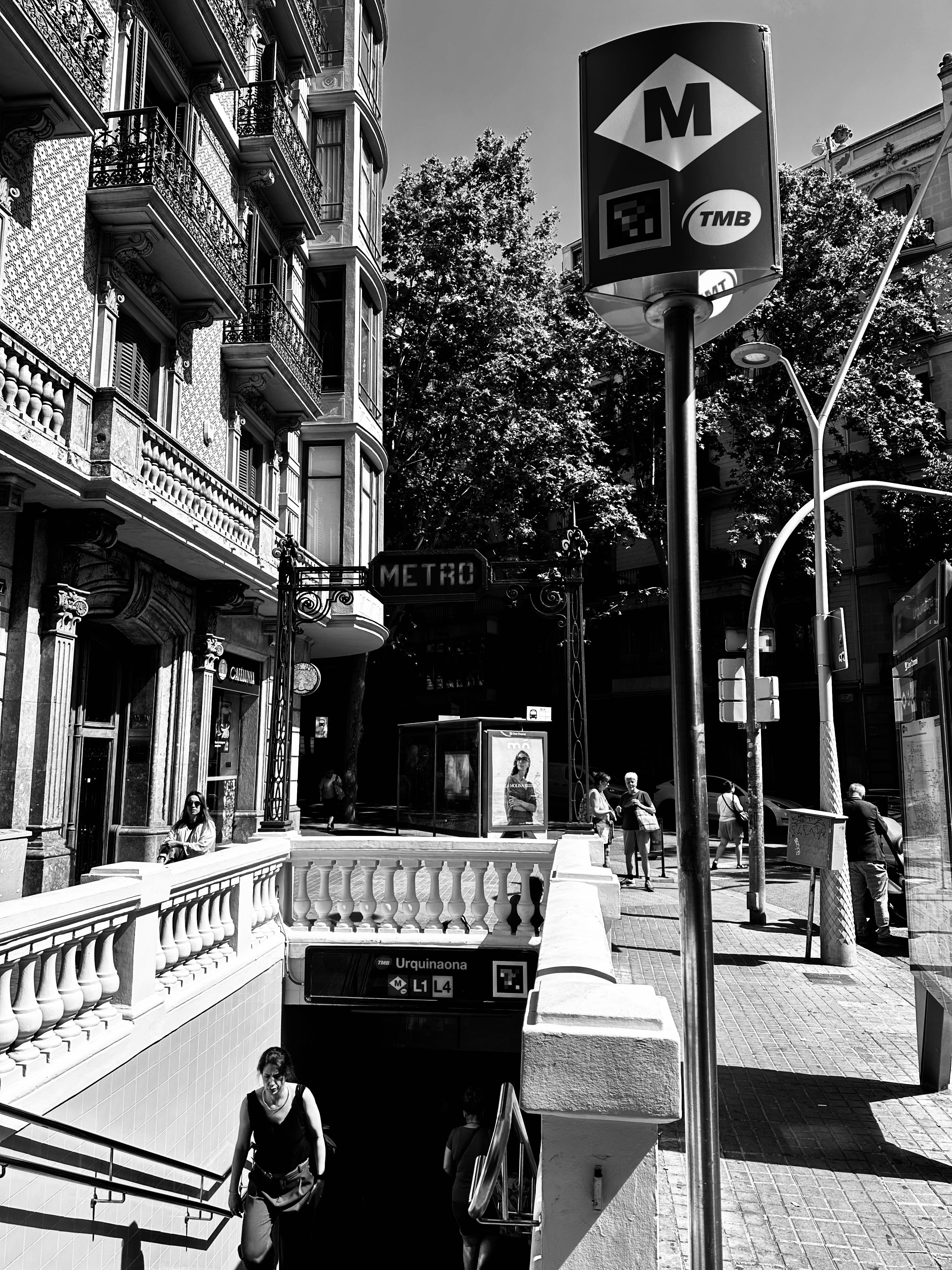 Urban Gateway: A Barcelona Metro Entrance in Monochrome