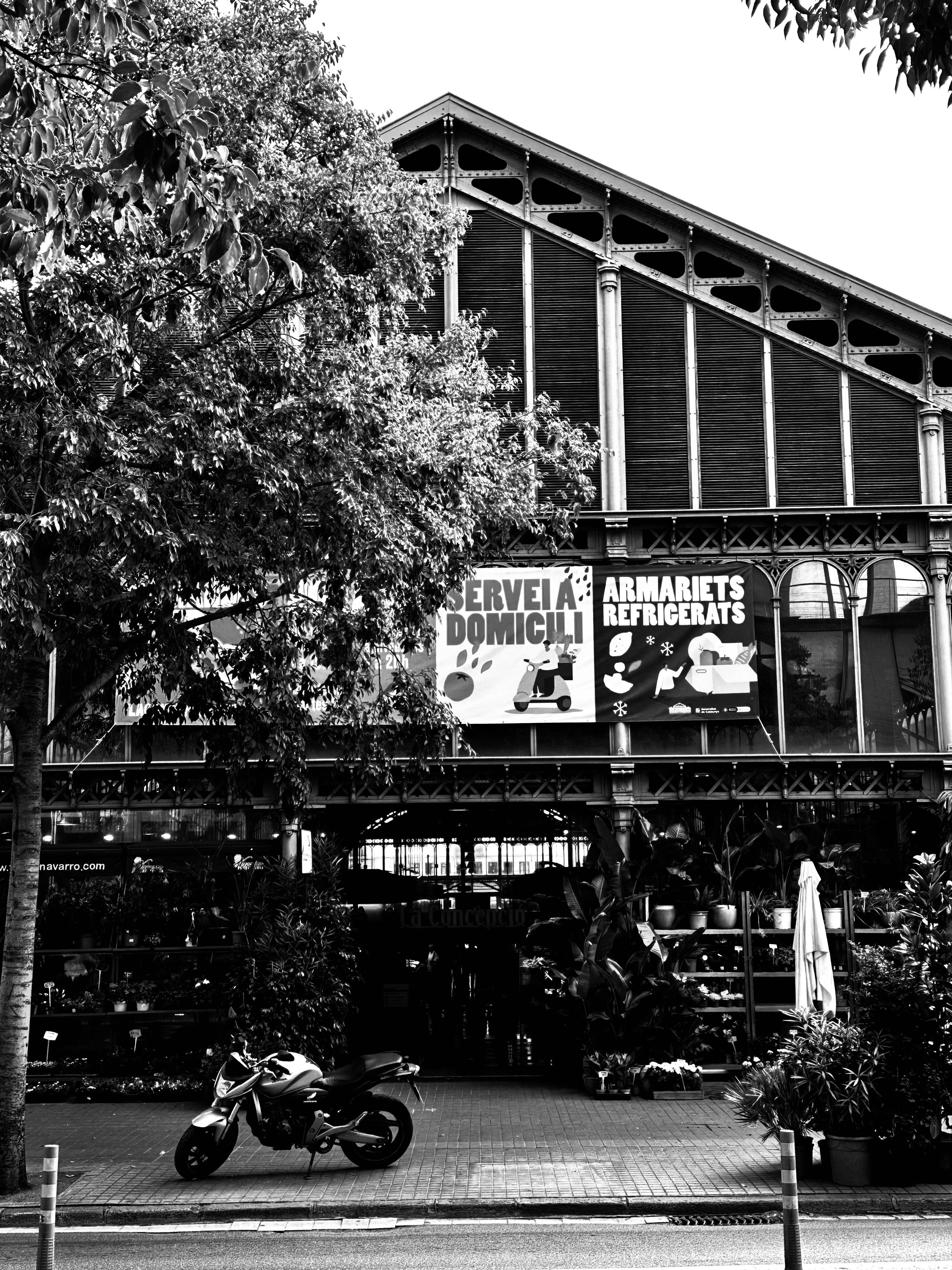 The signs, advertising “SERVEI A DOMICILI” (Home Service) and products, reinforce the building’s continued relevance as a hub of trade and community. This image is a beautiful statement about Barcelona’s urban endurance: a city that respects its grand industrial heritage while constantly adapting it to the needs of modern residents.